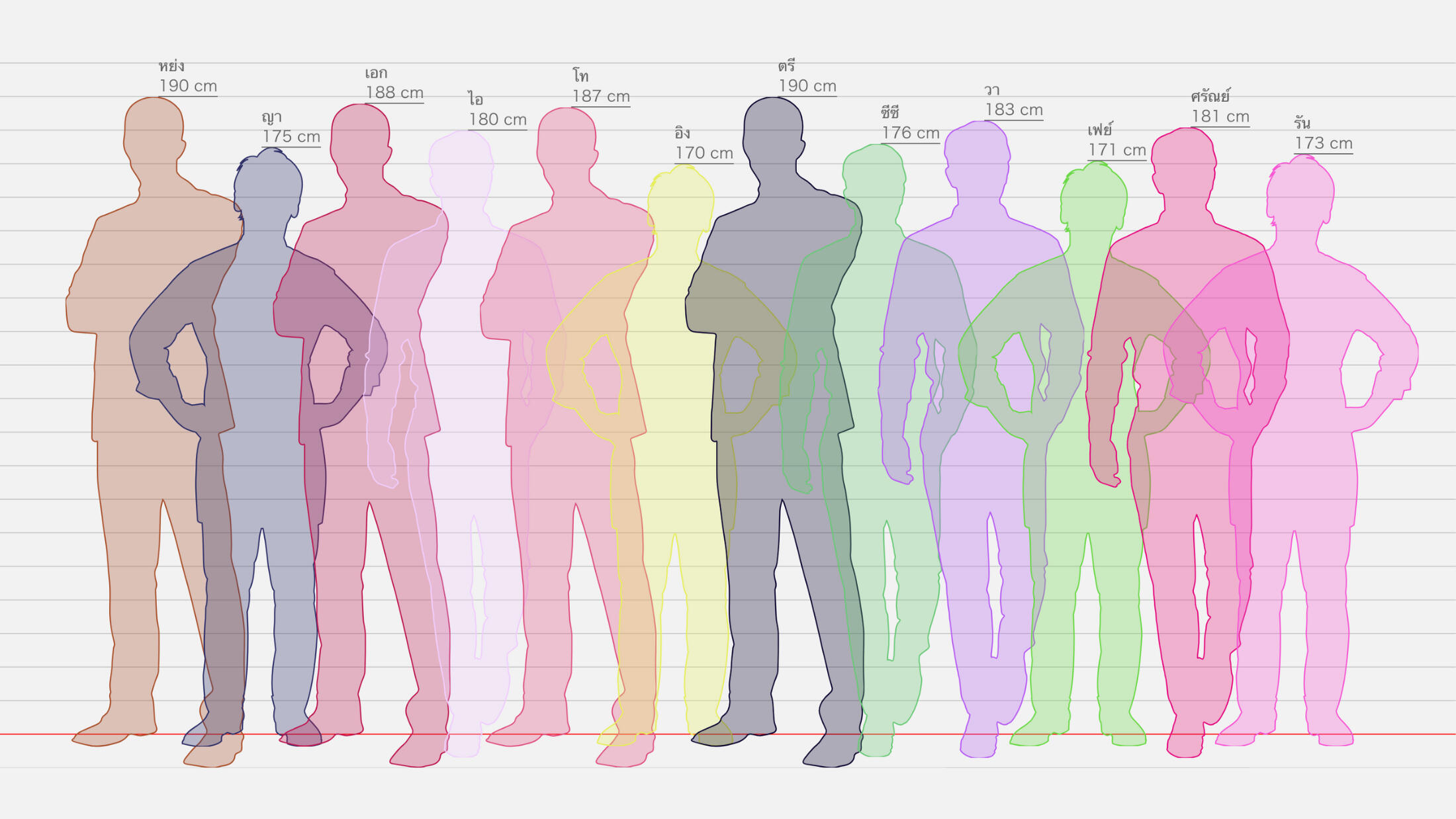 หมายเหตุ : นิยายเวอร์ชันเก่า โทสูง 188 / วา 186 / รัณ 189 / ไอ 177 / อิง 168 / ซีซี 174 / เฟย์ 168 / รัน 169