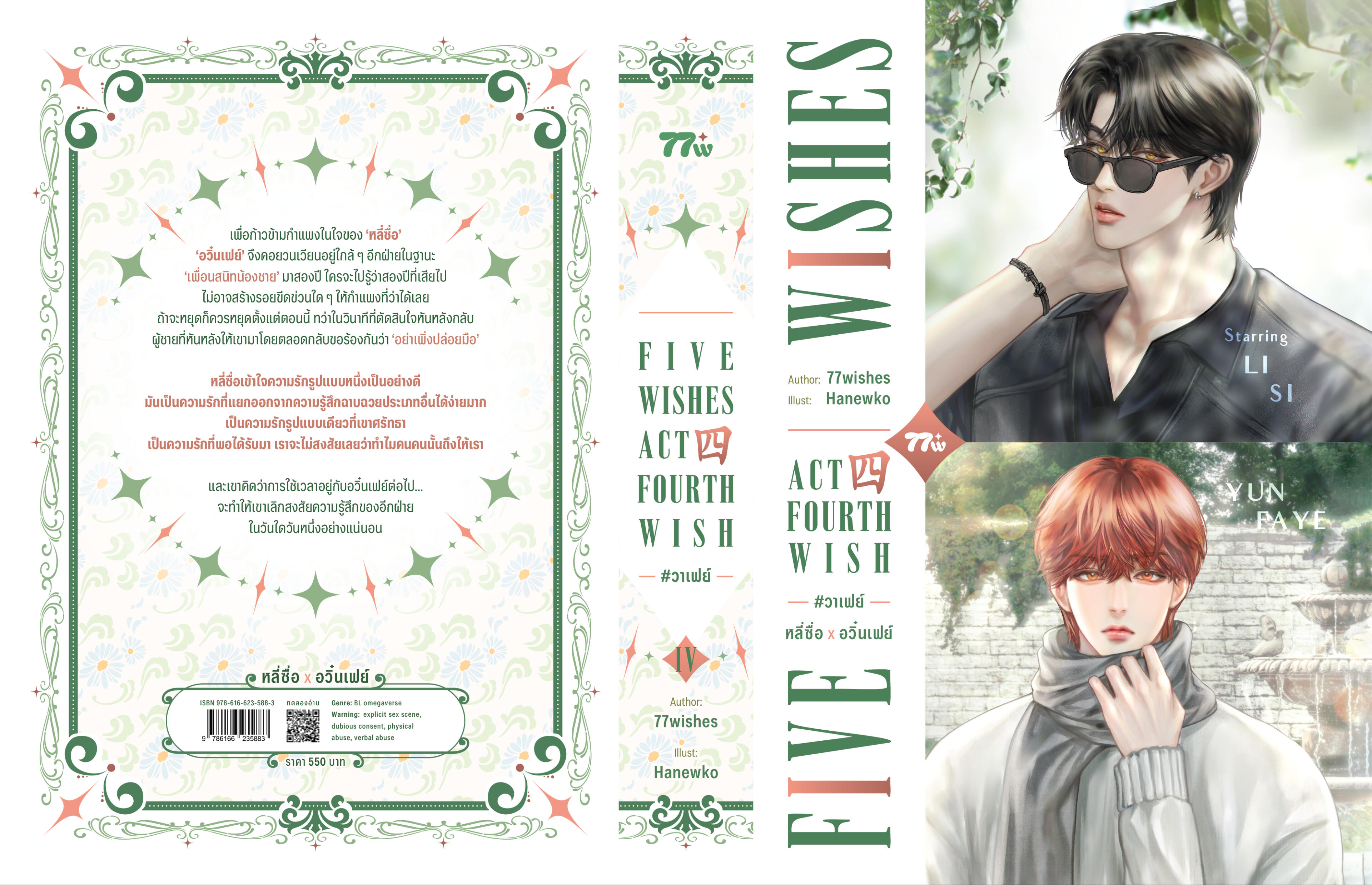หลังจบเรื่องราวของพ่อแม่ จะเข้าสู่เรื่องราวของรุ่นลูก ใช้ชื่อเซ็ตว่า Five Wishes ประกอบไปด้วยนิยาย 5 เรื่อง สามารถอ่านเรียงลำดับ First > Second > ... > Fifth Wish ได้เลยค่ะ2) First Wish เอกไอ